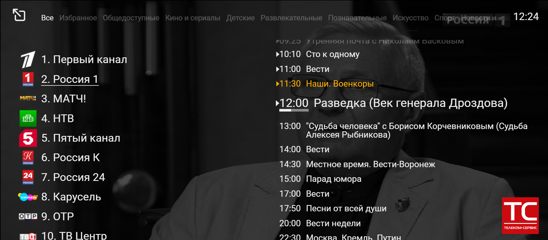 Для просмотра записи телепередач, Вам потребуется зайти на интересующий Вас канал и при помощи клавиш навигации влево/вправо найти необходимый временной промежуток телеэфира, также стоит учитывать, что не все каналы поддерживают данной функционал.