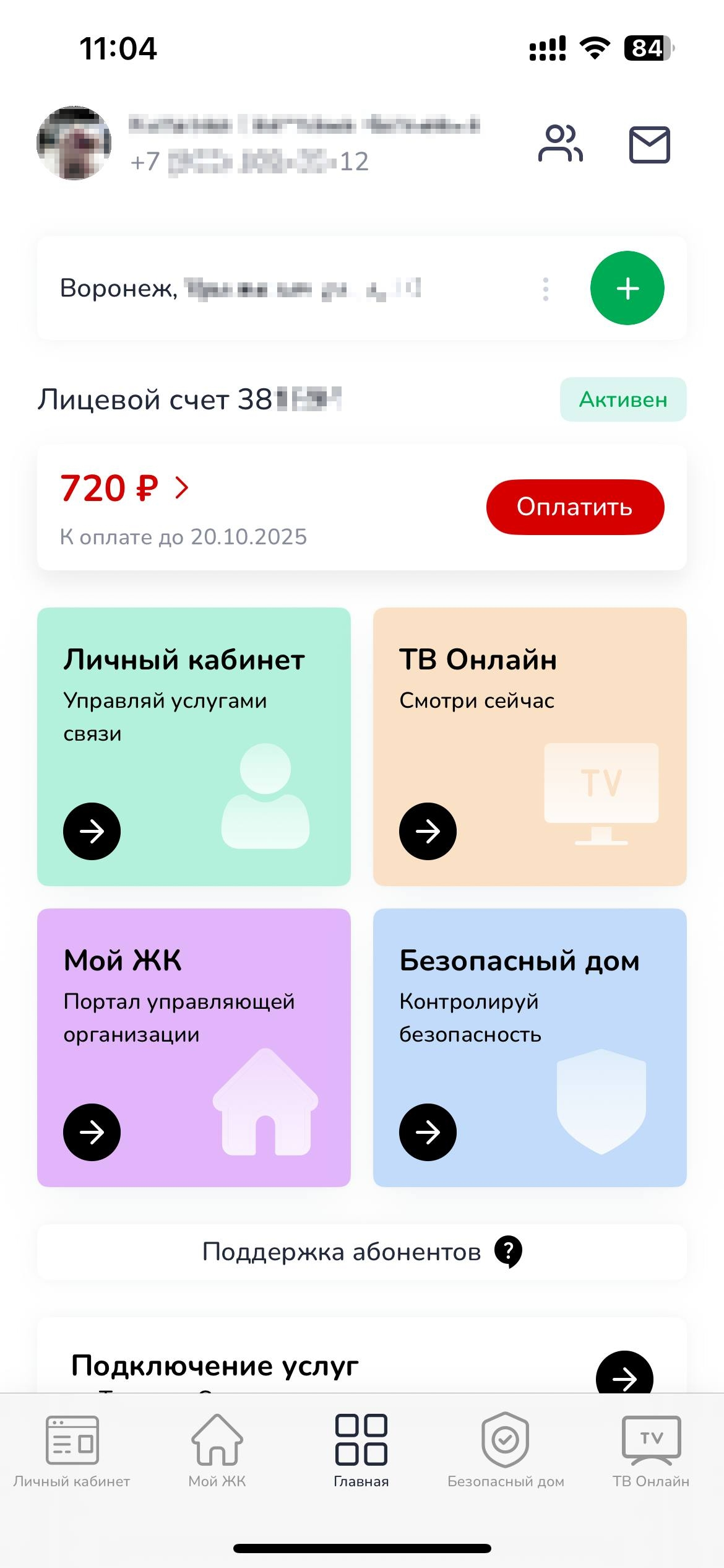 - Все подключенные услуги;