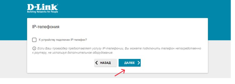 8. В появившемся окне можно указать параметры IP-телефонии, нажмите кнопку «Далее».