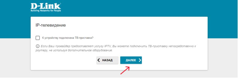 7. В появившемся окне можно указать параметры IP-телевидения, нажмите кнопку «Далее».