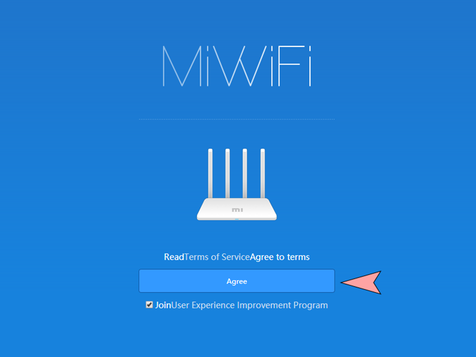 Шаг 1. Вам необходимо открыть браузер и в адресной строке набрать адрес 192.168.31.1 или miwifi.com. В открывшейся странице нажмите кнопку «Agree»;