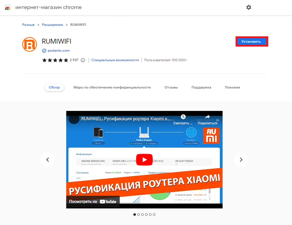 И в поиске вводим «RUMIWIFI» и переходим в него и нажимаем кнопку установить.