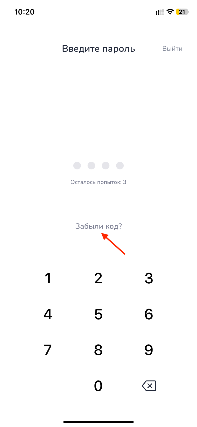 Для получения пароля вам необходимо воспользоваться функцией «Забыли код?» на экране входа в личный кабинет.